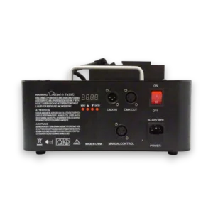 Dank ihrer schnellen Aufheizzeit ist die DF-1500A in kürzester Zeit einsatzbereit und liefert einen gleichmäßigen, dichten Nebel. Die integrierte DMX-Steuerung ermöglicht eine präzise Anpassung der Nebelintensität und -dauer, sodass sie sich perfekt in bestehende Licht- und Bühnenshows integrieren lässt. Alternativ kann die Maschine auch mit der kabellosen Fernbedienung gesteuert werden, was eine flexible Bedienung aus der Ferne ermöglicht.